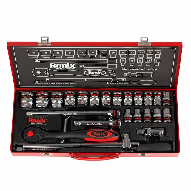 مجموعه 24 عددی آچار و سری بکس رونیکس مدل 2624RH یک ست کامل و حرفه ای 24 پارچه از برند رونیکس است که برای مصارف خانگی,کارگاهی و تعمیر گاهی طراحی شده است. این مجموعه با بهره گیری از آلیاژ مقاوم کروم-وانادیوم ,دوام بالا و مقاومت در برابر فشار طول عمر طولانی را تضمین میکند و انتخابی ایده آل برای مکانیک ها و کاربران حرفه ای محسوب میشود.